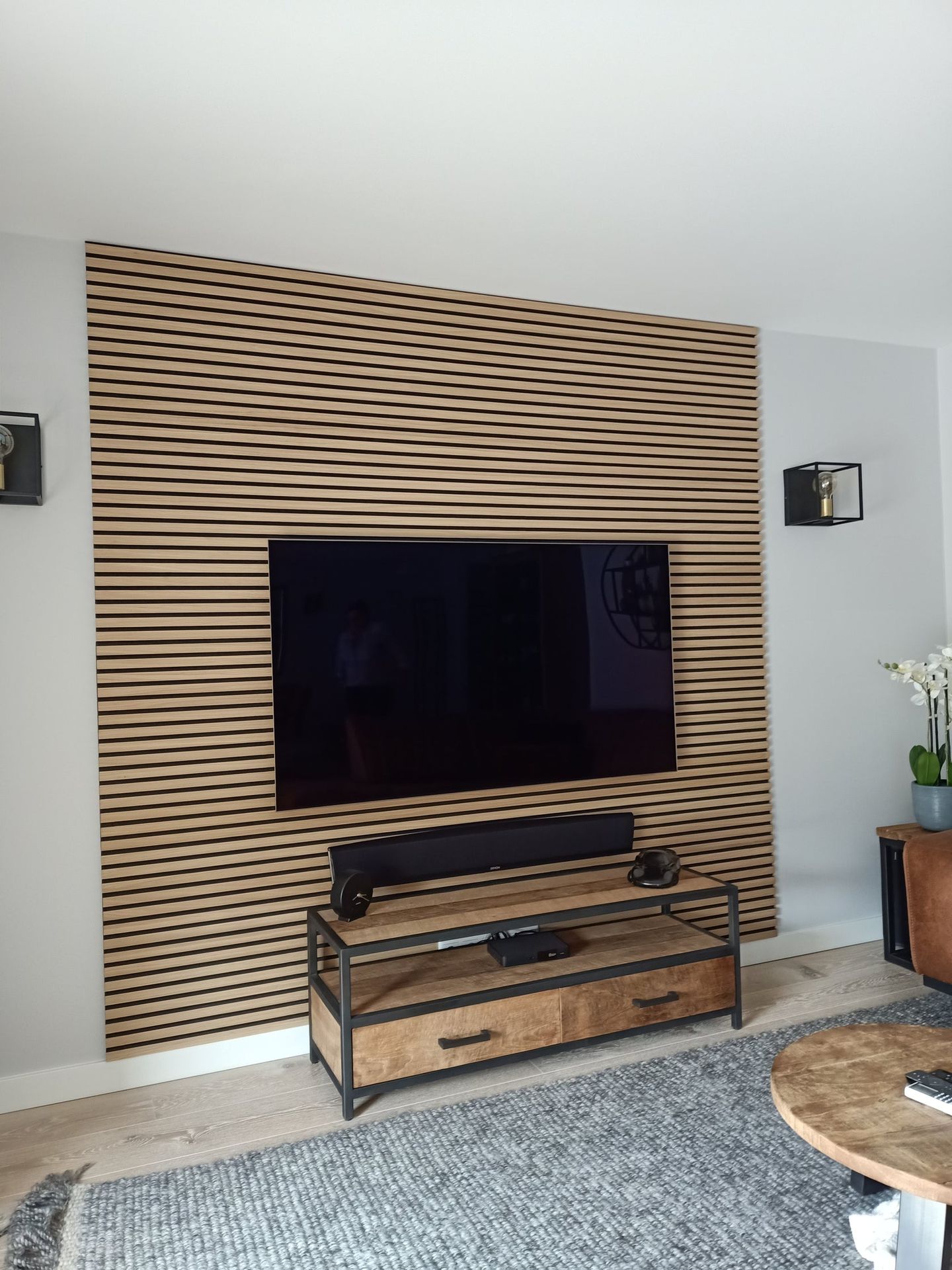 Het plaatsen van een houten lattenwand achter je televisie biedt een reeks praktische en esthetische voordelen die je kijkervaring en wooncomfort direct verbeteren: