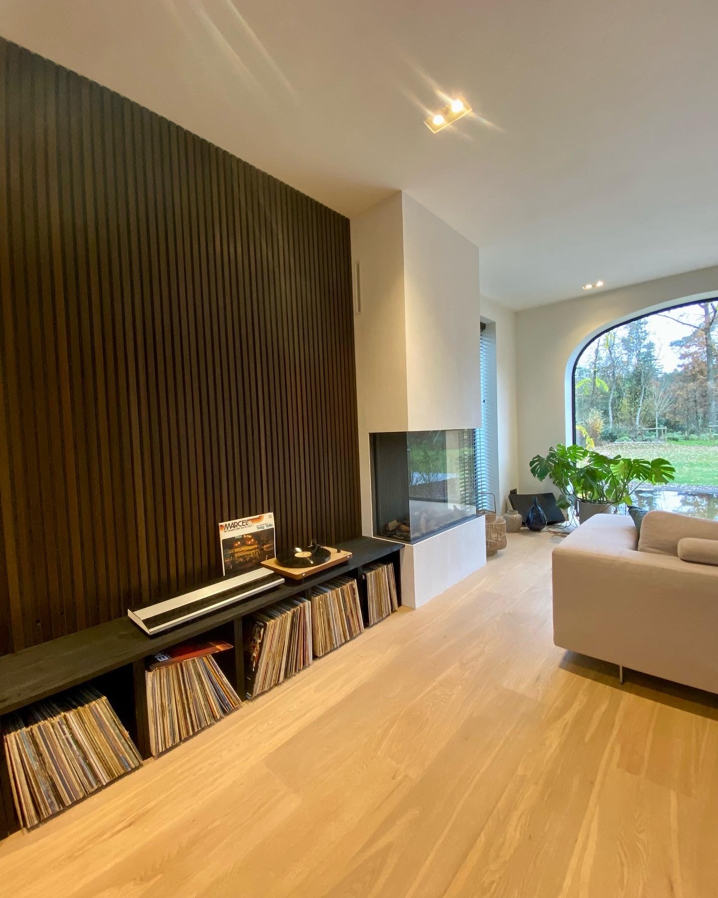- Terminologie: Je komt verschillende namen tegen, zoals lattenwand of lattenpanelen, die vaak verwijzen naar hetzelfde principe. Wanneer de panelen worden geïntegreerd met een tv en eventueel een haard, spreekt men vaak van een cinewall.